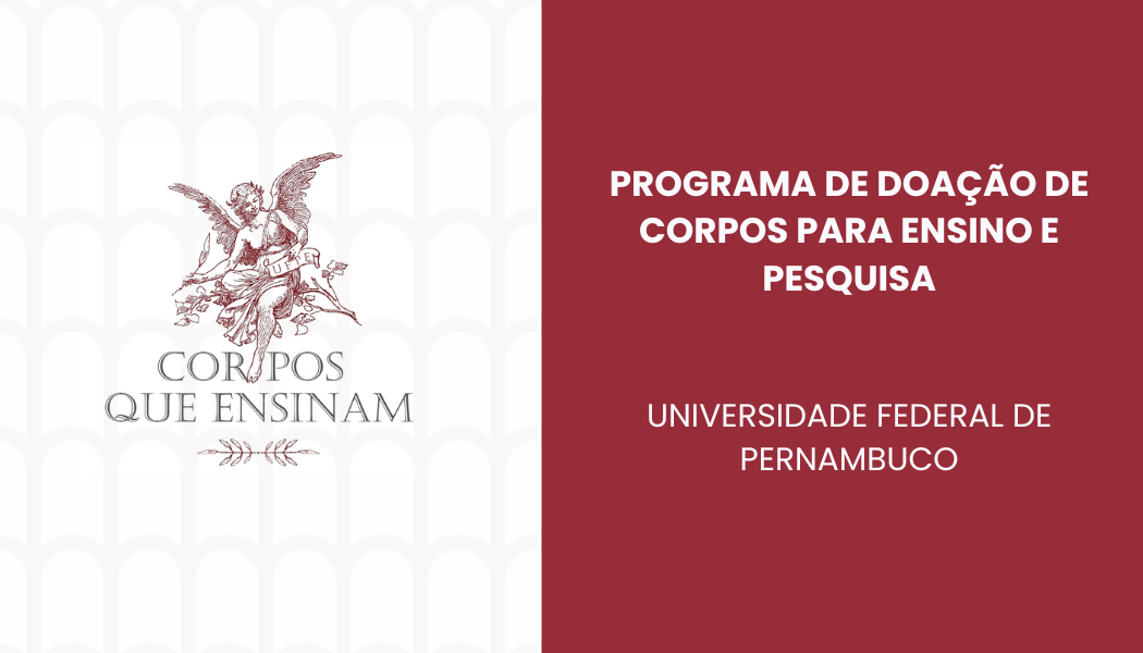 O Departamento de Anatomia da UFPE informa que o Programa de Doação de Corpos voltou a funcionar. O cadastro para doação do corpo em vida e o recebimento de cadáveres está sendo realizado normalmente.
