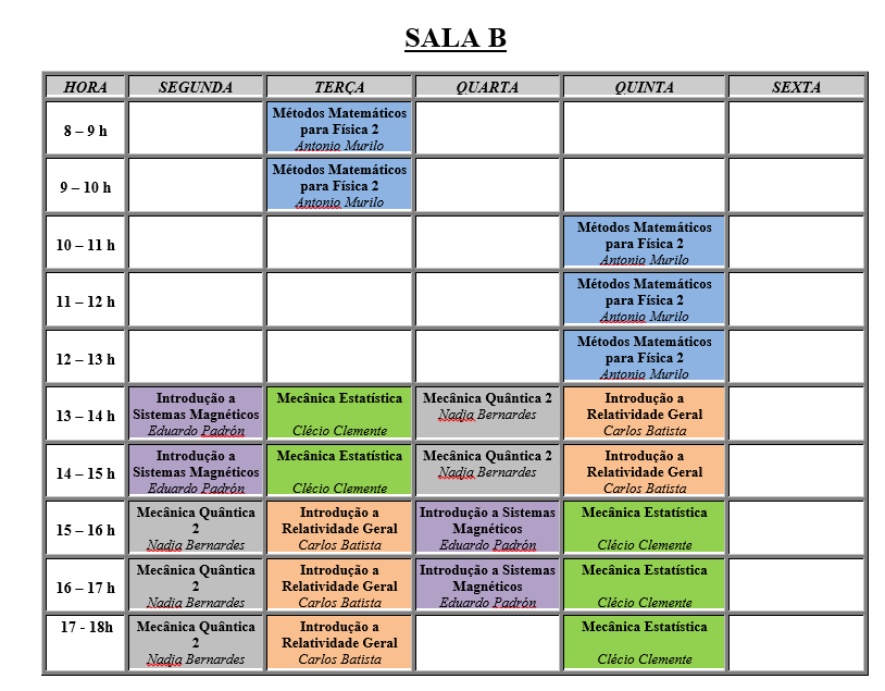 • Colegiado do Bacharelado em Física (Maio/2025 - Maio/2026)