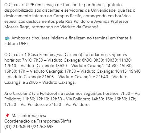 • Coordenador - Prof. Dr. Carlos Alberto Batista da Silva Filho (carlos.bsilvafo@ufpe.br)