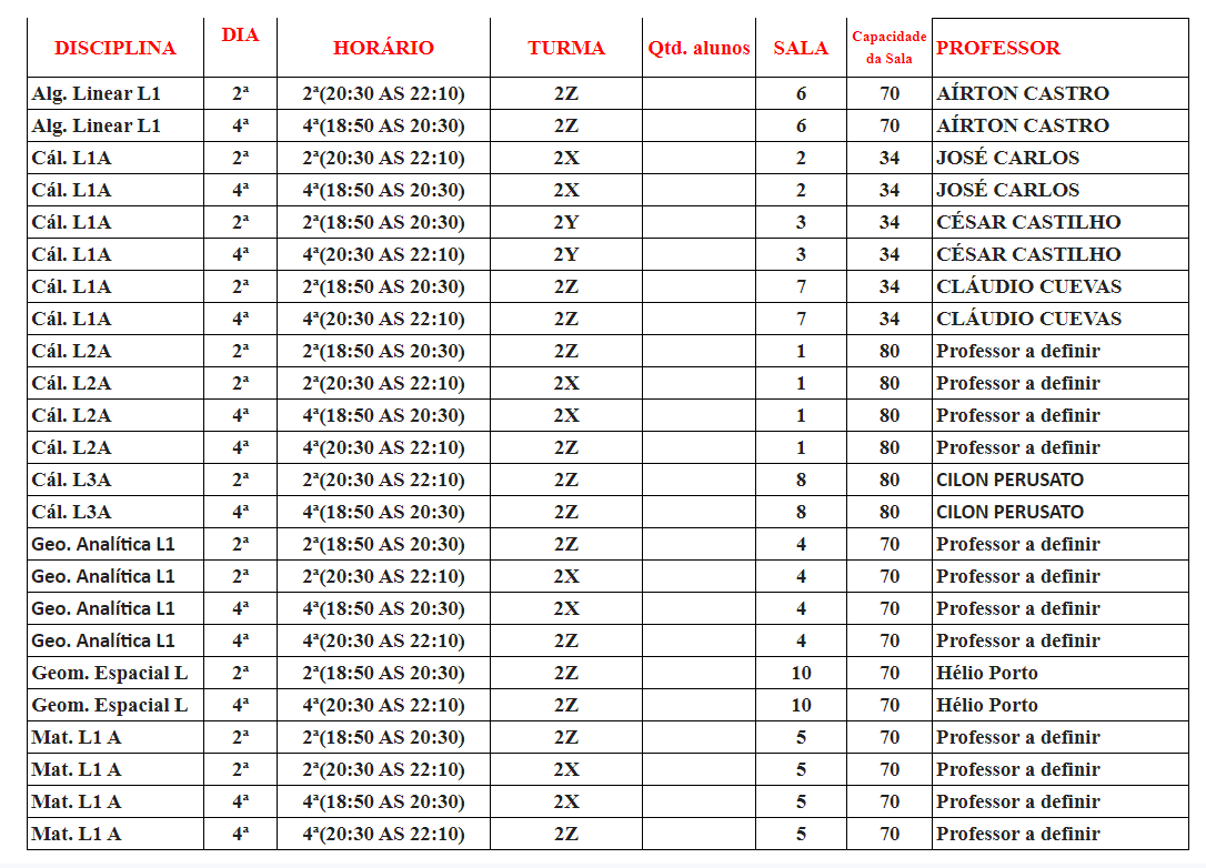 - Os alunos não blocados, que estão fazendo disciplina de diversos períodos diferentes, devem tentar adequar seus horários conforme a oferta de disciplinas.