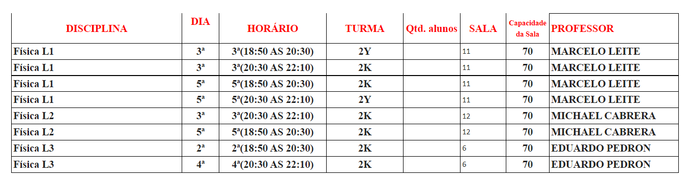 - O curso de Licenciatura em Física oferta no primeiro semestre de cada ano as disciplinas dos semestres ímpares;
