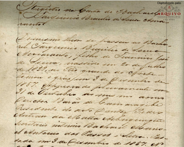 >> Livro de Registro de diplomas de bacharéis (1858 – 1881) – Acervo do Arquivo da FDR