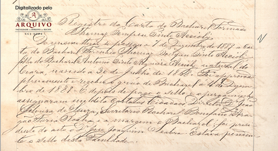 >> Lista geral dos bacharéis e doutores que tem obtido o respectivo grau na Faculdade de Direito do Recife, desde a sua fundação em Olinda, no ano de 1828, até o ano de 1931 – Acervo do Arquivo da FDR