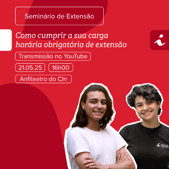 O Centro de Informática (CIn) da UFPE realiza, no próximo dia 21, das 16h às 17h, o seminário “Como cumprir a sua carga horária obrigatória de extensão”, voltado para estudantes de graduação dos novos perfis curriculares. O seminário será ministrado pela Coordenação de Extensão do CIn no anfiteatro do Centro e contará com gravação, possibilitando o acesso posterior ao conteúdo.
