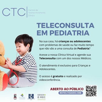 O Núcleo de Telessaúde (Nutes) da UFPE está com agendamento aberto para atendimento virtual de pediatria para crianças e adolescentes entre zero e 18 anos, de segunda a sexta-feira (exceto feriados). O serviço, que é uma iniciativa do Programa de Residência Médica em Pediatria em parceria com o Nutes, é aberto ao público e gratuito. O agendamento para as teleconsultas deve ser realizado por um adulto responsável pelo paciente, mediante cadastro na Central de Telemonitoramento Clínico (CTC) do Nutes, no site.