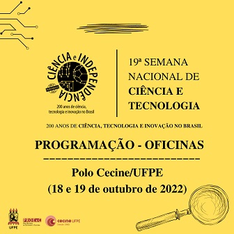 A Coordenadoria do Ensino de Ciências do Nordeste (Cecine) da UFPE realiza hoje (18) e amanhã (19) oficinas dentro da programação da Semana Nacional de Ciência e Tecnologia - Polo Cecine 2022. A programação completa está disponível aqui.
