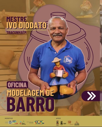 O mestre Ivo Diodato de Tracunhaém vai ministrar duas oficinas de modelagem de barro na UFPE nos meses de agosto e setembro. Os eventos são realizados pela Secretaria de Cultura de Pernambuco (Secult) e do Ministério da Cultura (Minc). As inscrições ficam abertas até o dia 9 e devem ser feitas por formulário on-line.