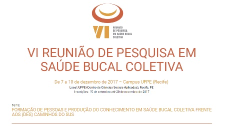 A VI Reunião de Pesquisa em Saúde Bucal Coletiva , que ocorrerá de quinta-feira (7) até o dia 10 deste mês, no Centro de Ciências Sociais Aplicadas da UFPE (CCSA), com o tema “Formação de pessoas e produção do conhecimento em saúde bucal coletiva frente aos (des) caminhos do SUS”, contará com cerca de 150 participantes que atuarão em três eixos de conhecimento - Inovação no cuidado e na clínica em saúde bucal: formação e competências profissionais; Vigilância a saúde bucal: em busca de uma epidemiologia social e para a intervenção; e Planejamento, gestão e modelos de avaliação dos programas e serviços de saúde bucal.